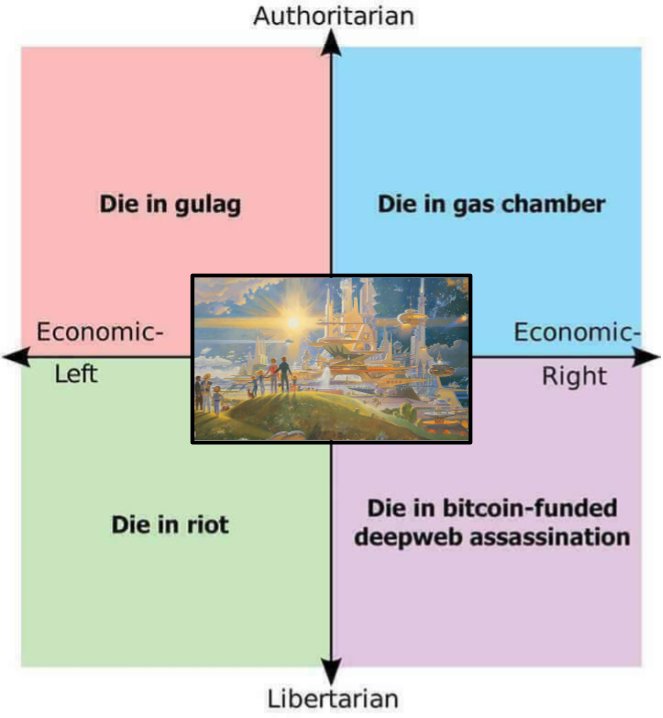 Die in a bitcoin-funded gulag gas chamber during a riot.