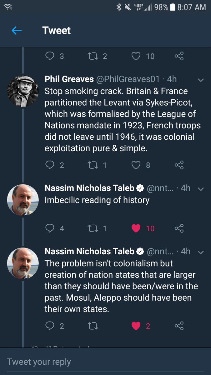 Taleb thinks that if it's not settler colonialism it's not colonialism.