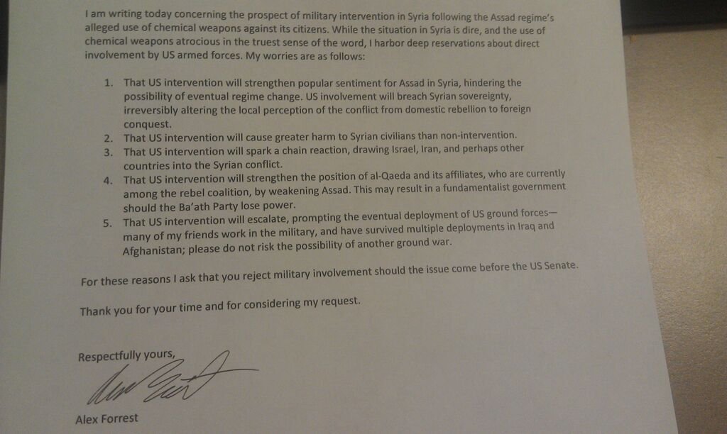totally forgot about this but in 2013 I wrote this awkward letter and sent copies to various politicians urging no intervention in Syriapic.twitter.com/4Xx4Qg7kkM