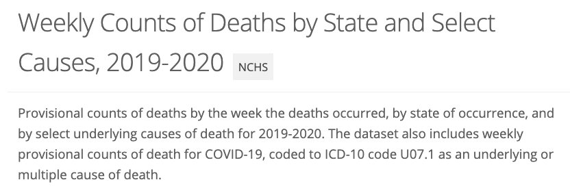 (6) These two tables show direct results from the "CDC Excess Deaths" dataset as of 5/20 thru 5/9. I only create calculated columns directly from their data. Source Link: https://www.cdc.gov/nchs/nvss/vsrr/covid19/excess_deaths.htm …pic.twitter.com/PVJlpsvZ0t