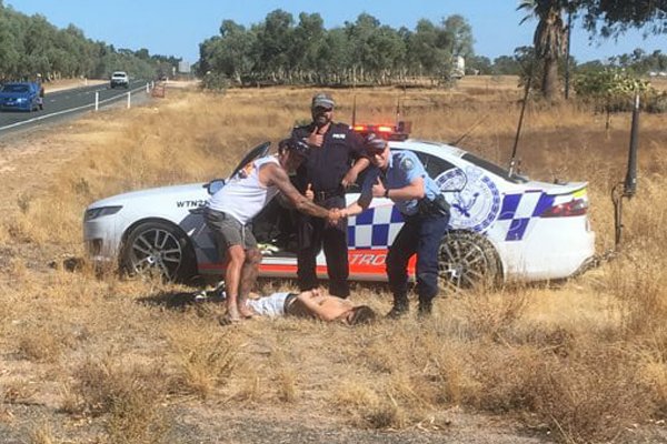 CITIZEN'S ARREST | A Geelong man has helped police arrest a suspect on the NSW border... ... and he's got the photo to prove it >> https://goo.gl/4YZVfU pic.twitter.com/vd0M714WyX