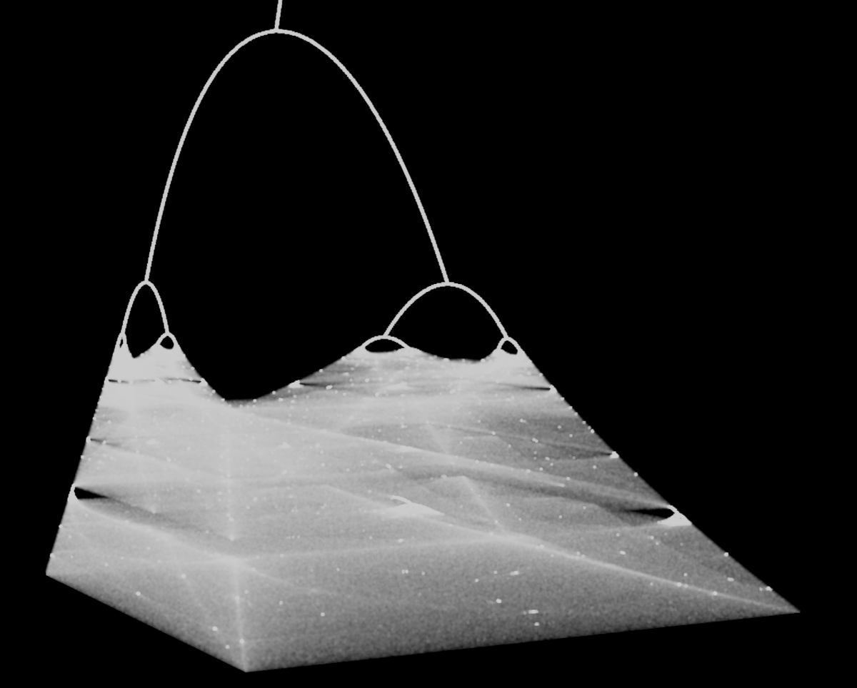 I really enjoy the logistic map. I was a bit surprised over the interesting 3D distribution of the detail clustering that happens in the chaotic regions after R=3.5.pic.twitter.com/856EIXRt7c