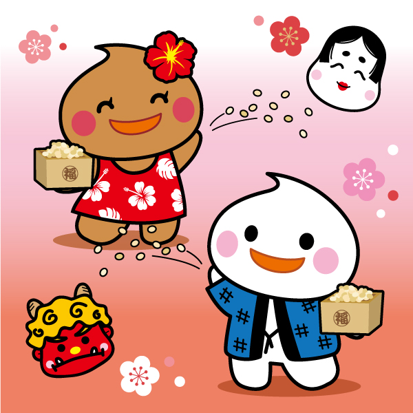ホワミル「ミルミル!きょうはせつぶん!おにはそと〜♪」 チャミル「ふくはうち〜♪みんなに ふく がいっぱいきますように