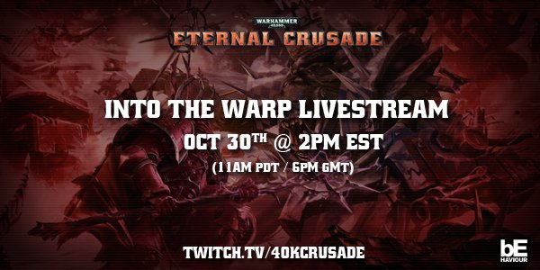 Crusaders, join us Fri @ 2pm EST for the #40kcrusade Twitch! GMT note the time change! http://bit.ly/1MtwGwM pic.twitter.com/HY4kTXJCBr