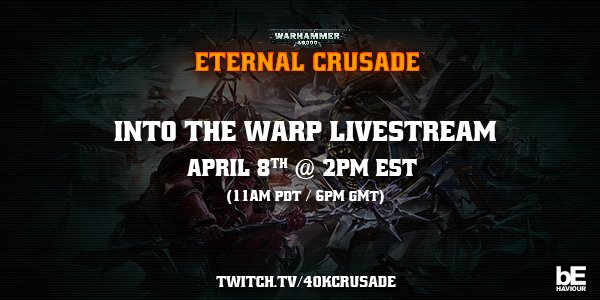 Catch the #40kcrusade Twitch show on Friday @ 2pm EST! Vehicle updates, Warparties, & more! http://bit.ly/1SQqoqX pic.twitter.com/wUf8ckwITR