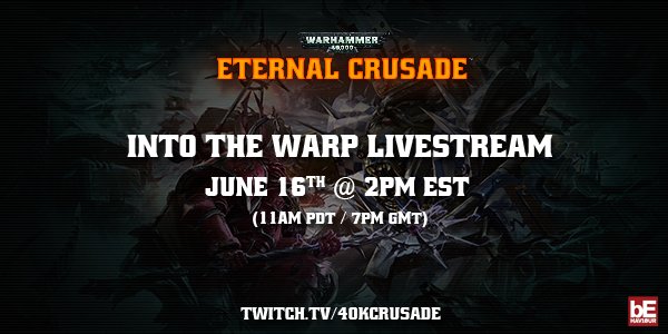 30 min until the #40kcrusade Twitch begins! Plus, stick around after for @iamDJPenguin's show & try to kill a dev! http://bit.ly/1TPkx8u pic.twitter.com/vURi3IF5uF