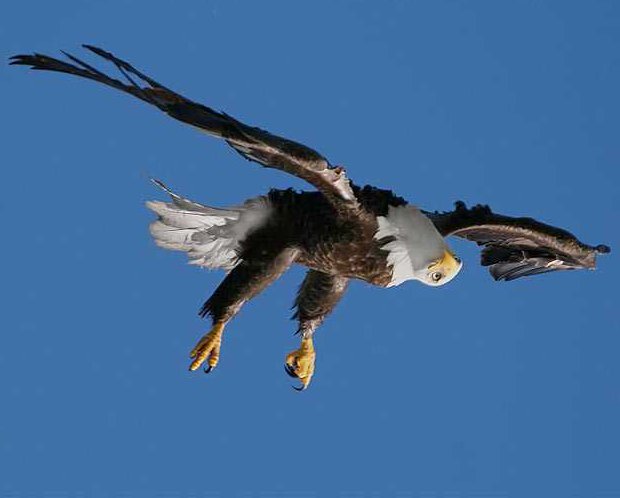 I've seen one do this when it was being hectored by crows in flight: the crows would stay above and behind the eagle, darting in to peck at it, and the eagle would suddenly flip to try to grab them with its talons