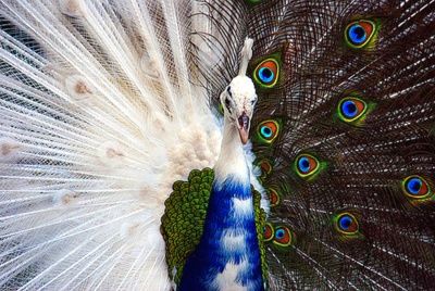 Peacock gynandromorph's are some of my favorite they are so beautiful. Since females are white and males are blue and green.pic.twitter.com/jn7tuRy8Bn