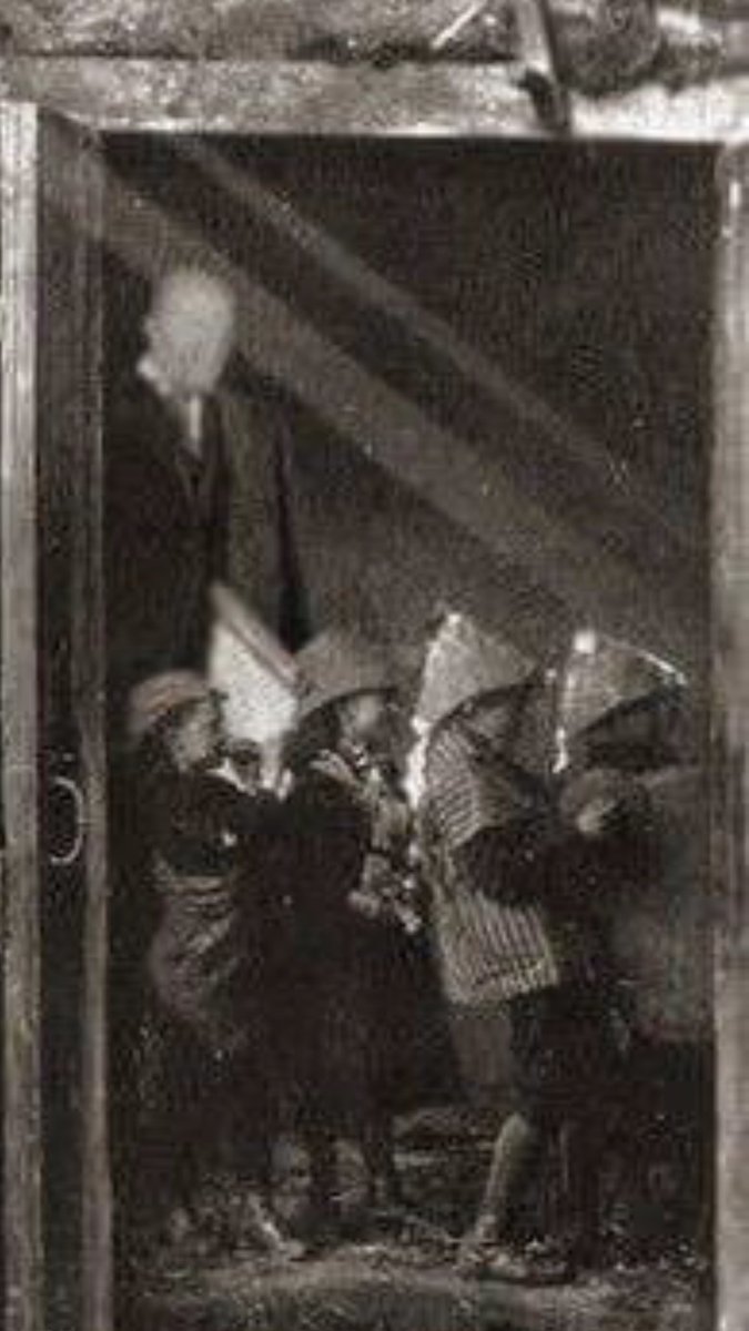 Slenderman just doing his thing in the back room herding children in the background, as everyone else is paying attention to a girl trying to cut a sunbeam.pic.twitter.com/cb3r7lv7lx