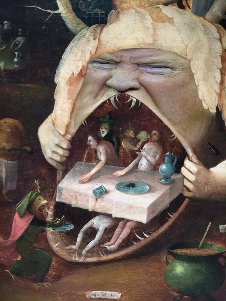 I love the works of Hieronymus Bosch. It is twisted and incredible, especially considering the time in which they were painted. Just when you thought you caught everything in one, you discover something else new and grotesque.