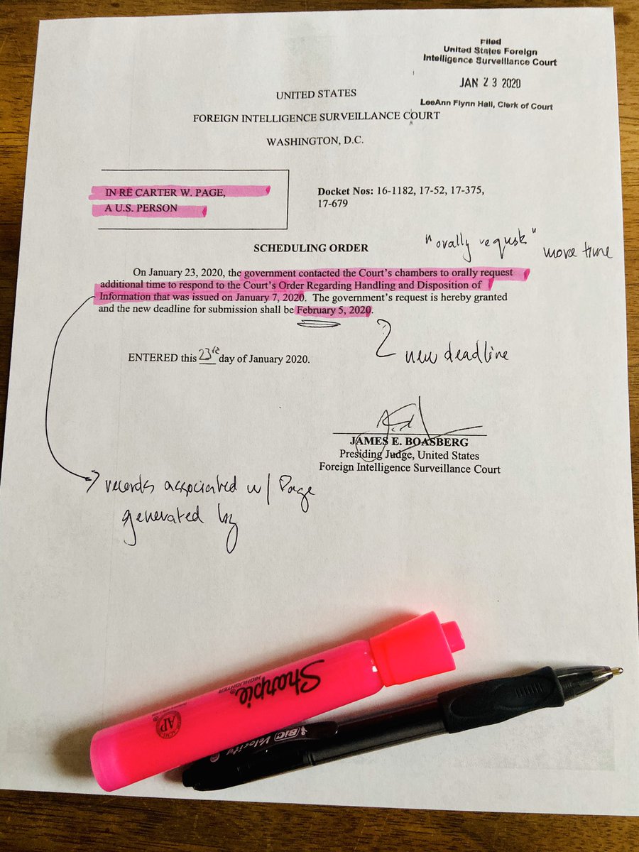 #FISA UNDER THE RADAR: Government makes “oral request additional time” to explain “handling and disposition” records associated with/generated by Carter Page surveillance. Two warrants already deemed defective, remaining two under review. New deadline February 5#MyHighlighterpic.twitter.com/adRRwFzMBO