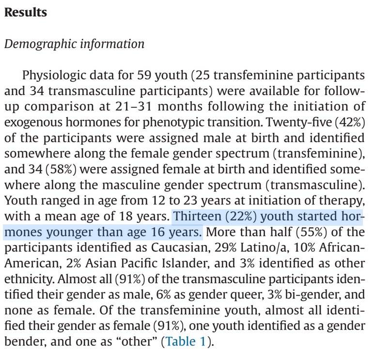 From J. Olson-Kennedy 2017, who is one of the recipients of a $5.7 million NIH grant to study "trans" children. A very high dropout level, short time frame to study impact of exogenous hormones on kids (22% under 16), including some "gender queer" and "gender benders."pic.twitter.com/PARDTog4Sy
