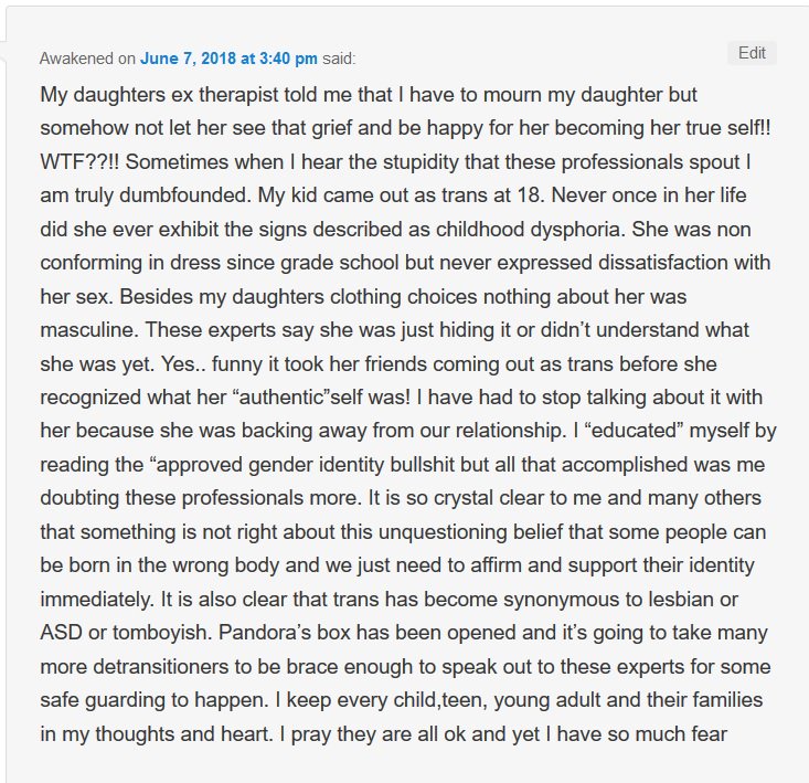 It seems likely that the more these activist "professionals" object to discussions & research of ROGD & what's been going on before their very eyes, the greater they'll be disgraced when they're discredited. And they *will* be discredited.