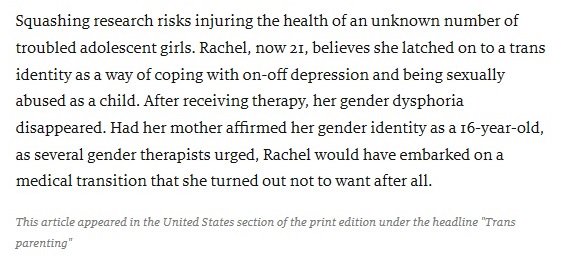 Burleton, a WPATH member, doesn't want you to know that girls like Rachel even exist; Rachel changed her mind, but would have been a candidate for the SRS Burleton pushes for 15-17 year olds. Why wouldn't Burleton want some youth to avoid drastic surgery? https://www.economist.com/united-states/2018/09/01/why-are-so-many-teenage-girls-appearing-in-gender-clinics …pic.twitter.com/YdXz2bHssY