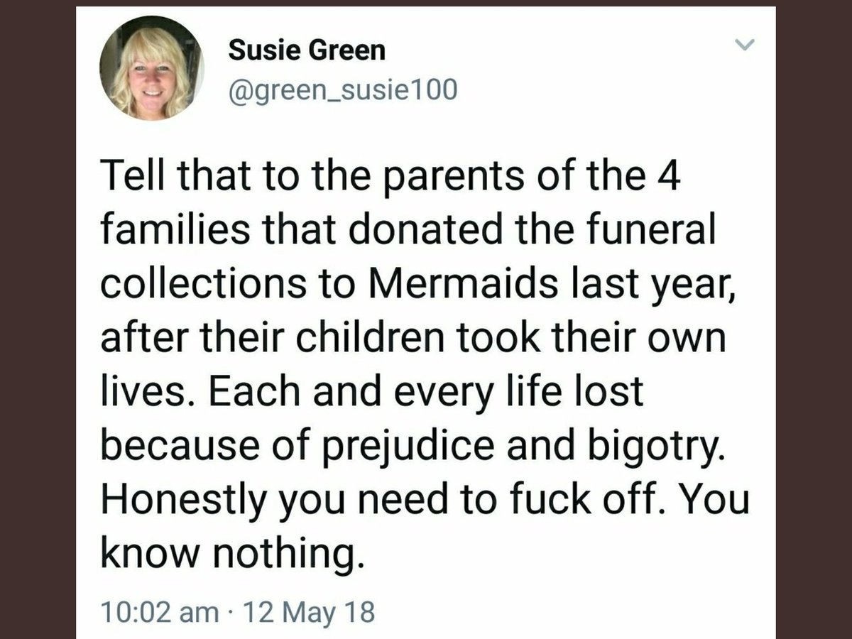 About this interview? Curious what was said? She and her compatriots in the US gender industry constantly talk about suicide.