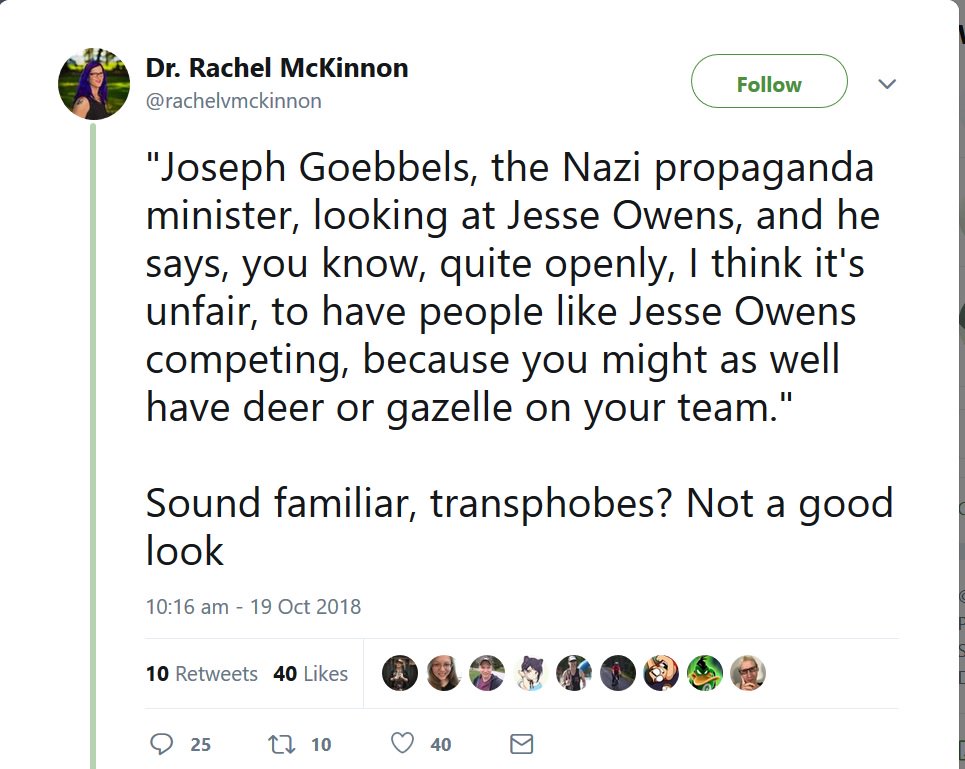 But seriously, women should just start refusing to participate in unfair competitions. Organize their own. Of course, TRAs would probably target everyone involved with violent threats.