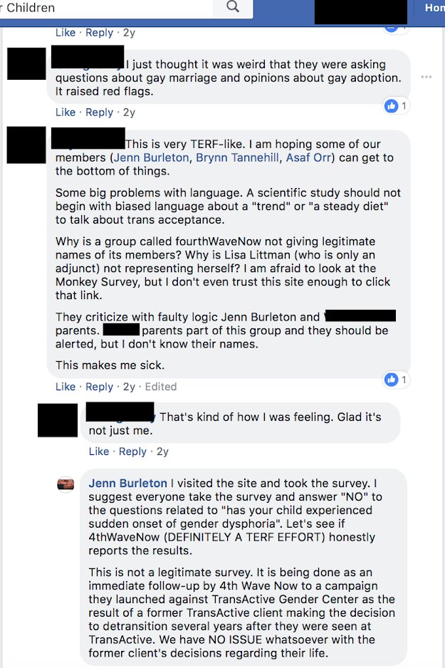It's pure BS that affirmative parents didn't know about Littman survey; they were exhorted to by trans activists & parents in a 7000+ support group. Source: https://quillette.com/2018/10/18/trans-activists-campaign-against-terfs-has-become-an-attack-on-science/ … Source for FB group photo (linked in above Quillette piece): https://photos.google.com/share/AF1QipMznPEmehcApGFCEvHFsBBe_cfwmtbtX-NufecL-OlR_auyEcQFFYWVI_h_jTHCDg/photo/AF1QipOFlygbLPS0V3lx2IYMF4JZrw_VDvaL88zeUR0x?key=N3VFSHRGdUhBczlCd2VqWG92ZVU0SnV6U2FiRGZB …pic.twitter.com/j46ynjmc0H