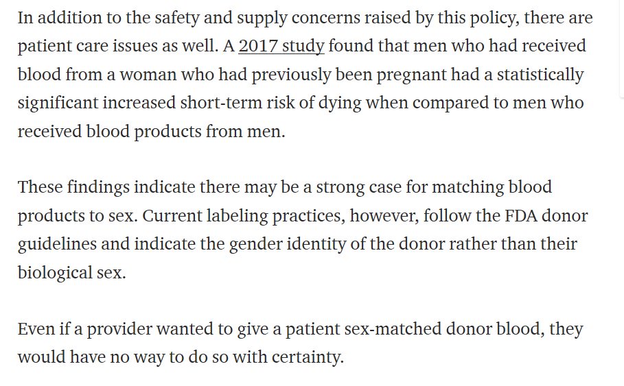 "A 2017 study found that men who had received blood from a woman who had previously been pregnant had a statistically significant increased short-term risk of dying when compared to men who received blood products from men."pic.twitter.com/XaRSPk9Ba1