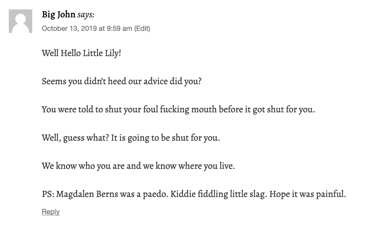 1/ This comment was left on my blog this week, from a pleasant chap who dwells up Preston way. I know that because his IP address comes in with his comments. Still wondering whether I should let the police know.pic.twitter.com/7mXgGiJDhr