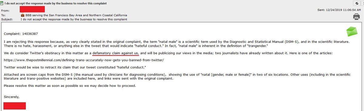 The greatest irony in Twitter's non-response is that we used "fear to silence another person's voice." We all know who is actually intimidating whom into silence, and it's not us, nor is it @gnc_centric, who wrote about her permanent suspension here.https://4thwavenow.com/2019/12/27/benji-gnc_centric-on-being-kicked-off-twitter-and-medium/ …