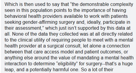 The paper (at above⬆️link) notes other possible concerns vis-a-vis mental health of prospective mastectomy patients, & recommends psychotherapy as part of the process. The activists in the thread, predictably, seem more concerned about "gatekeeping" than patient wellbeing.pic.twitter.com/6ZtUbpl9k0