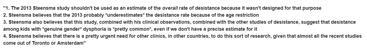 chose to not return to the clinic. A more correct conclusion would hence be that there was never any evidence of how many desisted or how many stayed trans.