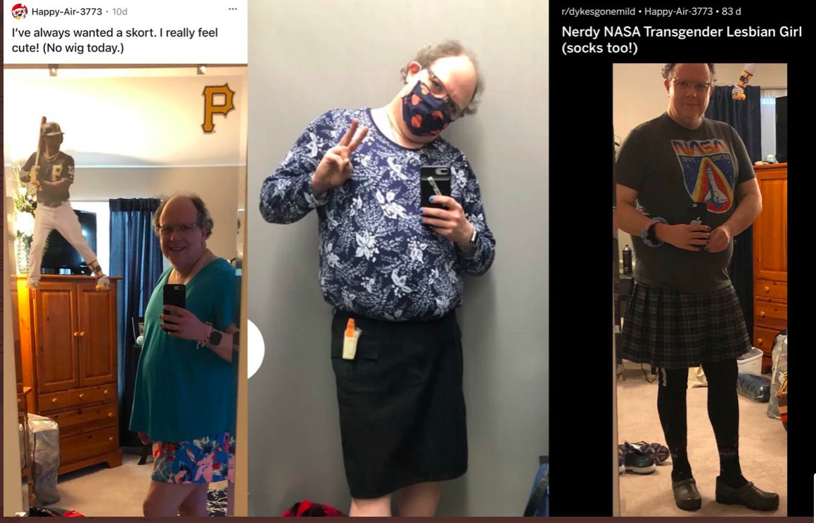 Photo on right: "Nerdy NASA transgender lesbian girl. Socks too!" The question isn't whether this person has a legal right to do or say this. It's that the trans rights movement has been hijacked by ppl who want it to be lauded, not just tolerated...else you're a transphobe.