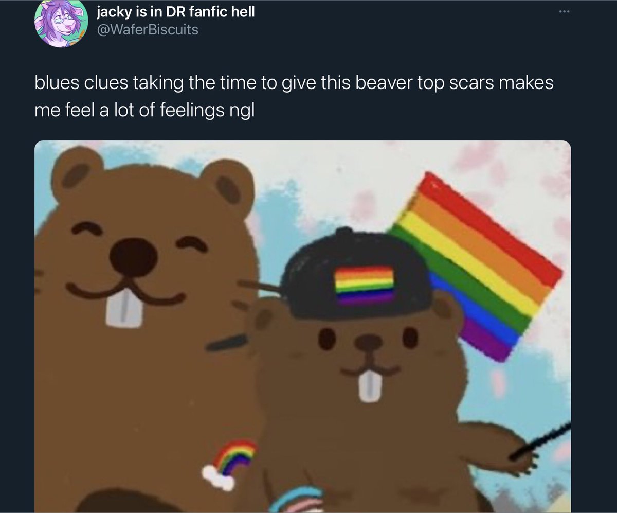 Blue's Clues Pride segment for preschoolers, featuring a trans beaver with mastectomy scars.https://twitter.com/oldspeaker1/status/1399003197524545542 …