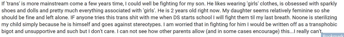 This is the future. Well funded trans-kid orgs are already involved in custody cases vs 'unsupportive' parents. http://www.mumsnet.com/Talk/womens_rights/2745747-Trans-in-childrens-and-young-peoples-services?messages=100&pg=1 …pic.twitter.com/Cs3lSbPdMF