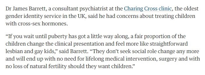 Dr James Barrett of London's Charing X clinic believes many 'trans' kids will eventually identify as #lesbian or #gay #TransgenderKidspic.twitter.com/egmTwajFaN
