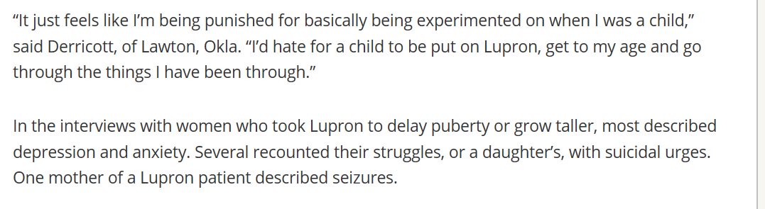 Article published TODAY. These women feel they were "experimented on" as children. Same drug used to block "wrong" puberty in trans kids.pic.twitter.com/iPhWZ4fEGn