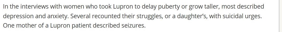 Which "gender specialist" will seek NIH $$ to study suicidality rate in trans people who were on Lupron as children? http://californiahealthline.org/news/women-fear-drug-they-used-to-halt-puberty-led-to-health-problems/ …pic.twitter.com/2JNgO0Pn85