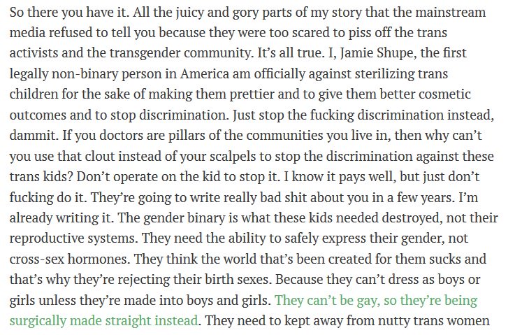 Jamie Shupe, 1st legal "nonbinary," goes down the "smoking rabbit hole" of transgender politics & gender medicine. https://youthtranscriticalprofessionals.org/2017/07/22/you-cant-feel-like-a-girl-an-essay-by-jamie-shupe/ …pic.twitter.com/NGVHc6Of8f