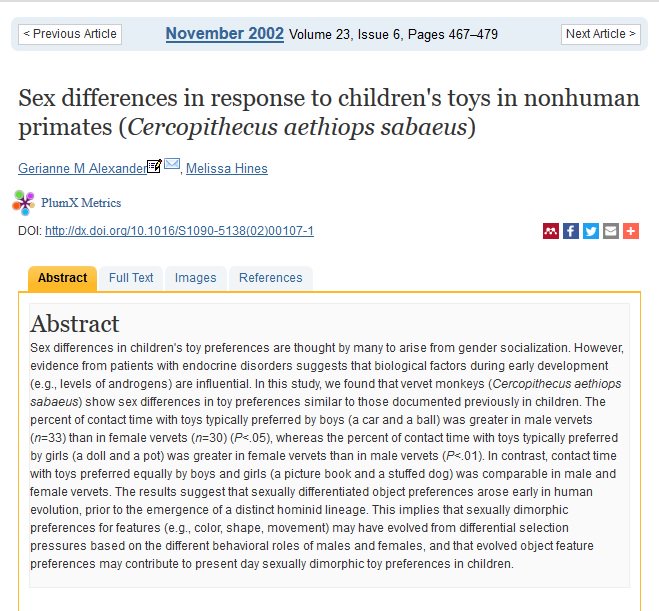 I thought the same thing... female primates are drawn to pots because cooking is girly? Really?