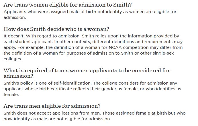 Smith College admits MTFs, rejects FTMs.But all policies in MA cover trans. So, will student plan pay for FTM's transition...then expel her?pic.twitter.com/vlI6hPnhgn