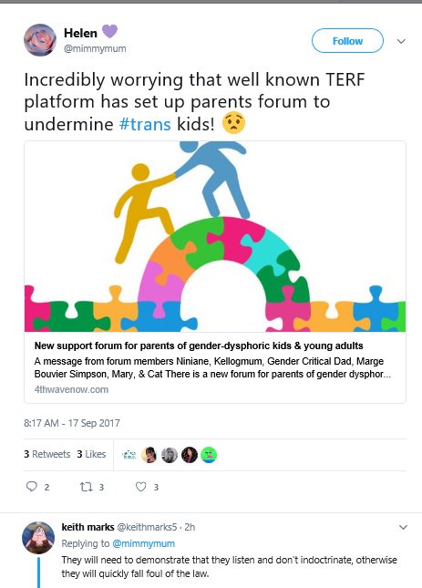 Here's the link to announcement about the parent forum. This pushback proves exactly why it's sorely needed.https://4thwavenow.com/2017/09/16/new-support-forum-for-parents-of-gender-dysphoric-kids-young-adults/ …