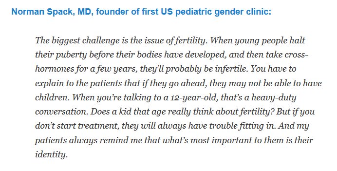 All gender docs agree that immature gametes cannot be banked. Not controversial. Natal puberty required. http://archive.boston.com/bostonglobe/ideas/articles/2008/03/30/qa_with_norman_spack/?page=2 …pic.twitter.com/0Q6H4rR465