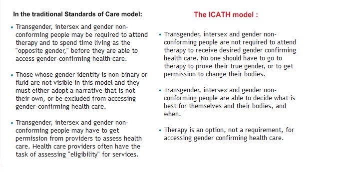 In US, most clinics follow IC model. Underpinning it is notion that trans should be self-ID'ed. No pathology. http://www.icath.org/ pic.twitter.com/8ZUsTFJKjh