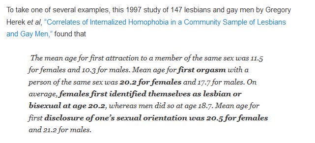 4. Research has shown young lesbians in particular don't integrate sexuality until 19-20+, well after authors recommend cross hormones.pic.twitter.com/Cfqx346bKy