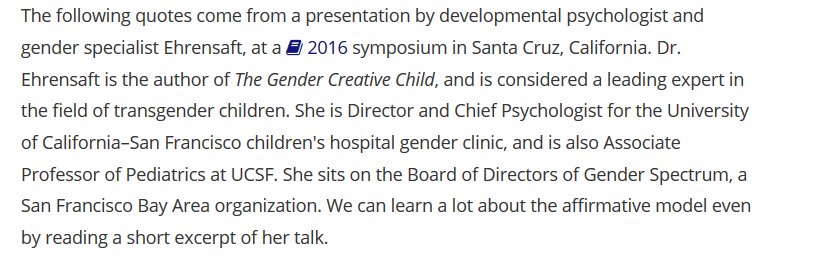 Make no mistake: Ehrensaft & Baum are highly influential. Ehrensaft is a top US pediatric "gender therapist." /1 http://www.tandfonline.com/doi/full/10.1080/00332925.2017.1350804?scroll=top&needAccess=true …pic.twitter.com/ncFv0tYmiH