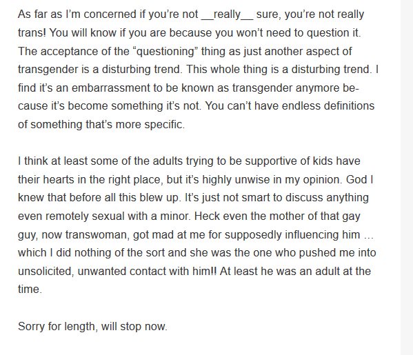 Trans person "unnerved" by current crop of interfering trans activists communicating with our confused MINOR kids. https://4thwavenow.com/2017/05/14/mtof-tells-trans-kids-to-dump-moms-on-mothers-day-and-join-the-glitter-queer-family-of-adult-trans-activists/comment-page-1/#comment-21973 …pic.twitter.com/vsezSbzaSy