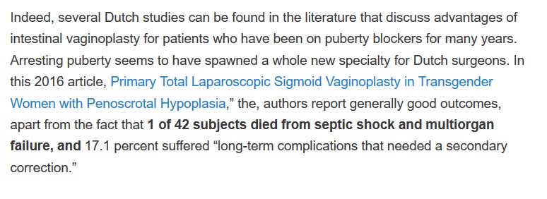 Preferred procedure in Europe: intestinal tissue. In Holland, where puberty blockers pioneered, it's a specialty. https://www.researchgate.net/publication/308768746_Primary_Total_Laparoscopic_Sigmoid_Vaginoplasty_in_Transgender_Women_with_Penoscrotal_Hypoplasia_A_Prospective_Cohort_Study_of_Surgical_Outcomes_and_Follow-Up_of_42_Patients …pic.twitter.com/tjAps3vmUM