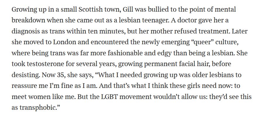 1/ This is the latest article about young people transitioning that is causing a stir https://www.thetimes.co.uk/article/meet-alex-bertie-the-transgender-poster-boy-z88hgh8b8 … Behind a paywall but someone posted it here (note that that is not a trans-friendly site): https://www.mumsnet.com/Talk/womens_rights/3083956-Janice-Turner-again-in-The-Times-about-lesbians …