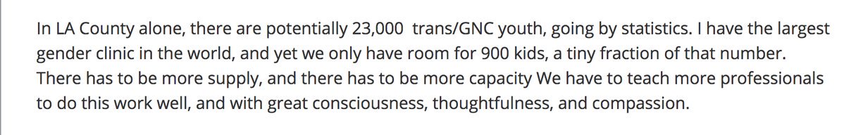 "I have the largest gender clinic in the world," says Dr. Olson-Kennedy. 900 clients, with more on the way. Wants to train others in her methods. http://www.genderodyssey.org/blog/spotlight-dr-johanna-olson-kennedy/ …pic.twitter.com/xi20PakZCB