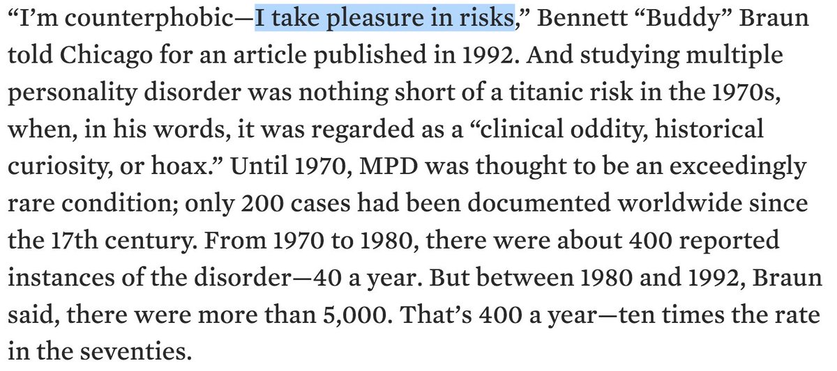 Bennett "I take pleasure in risks" Braun was an expert in Multiple Personality Disorder. MPD once was extremely rare, but became much more prevalent in the 1980s.pic.twitter.com/qXYzzwF3Ro