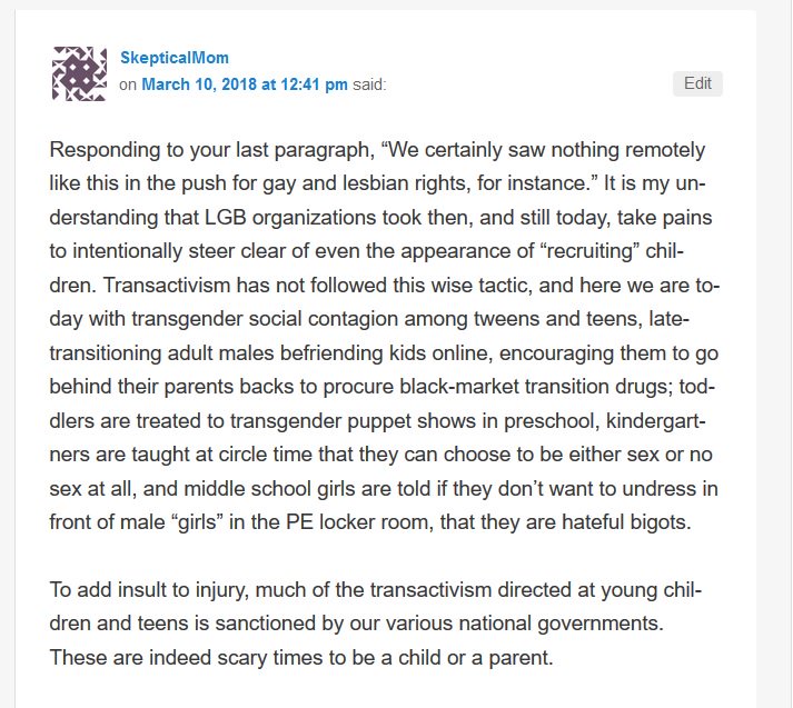 Yes, there are many distinctions between LGB and T. But when the pushback comes it will be the entire LGBT umbrella that gets caught up in the storm.