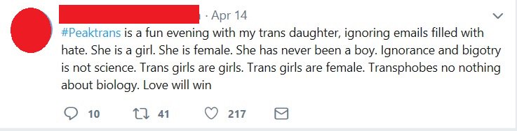 There was a campaign started a couple days ago by Twitter trans activists to "take over" the #PeakTrans tag.