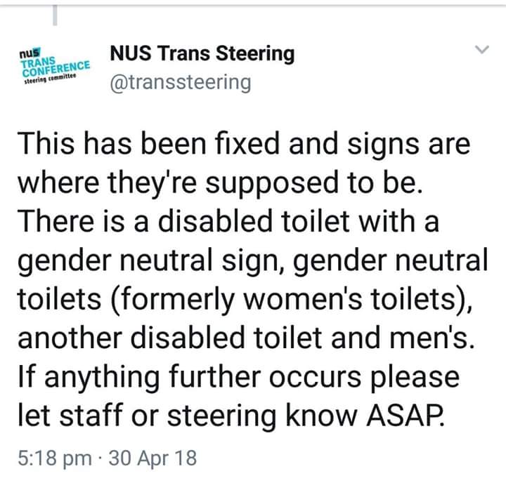 Aren't disabled toilets gender neutral by their very nature. WTF is going on.