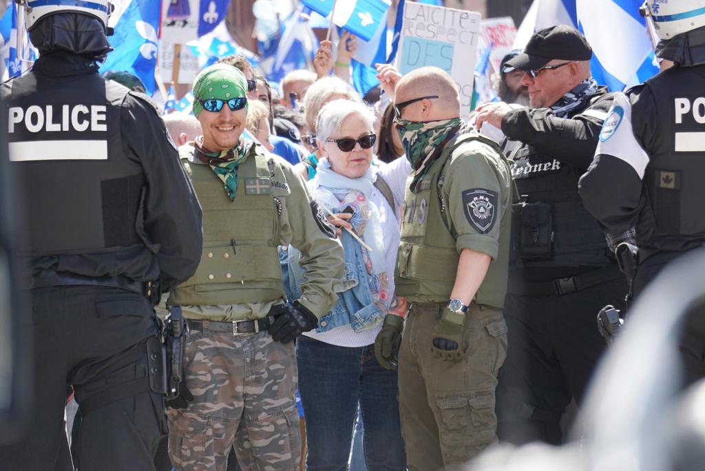 Today is the "vague bleu" in Montreal, maybe the largest far right demonstration in Quebec in a long time. It's a demo in favour of the prov. gov't's ban on hijabs for public sector workers. A few hundred people are assembled for a counter demo. Will post updates through the day