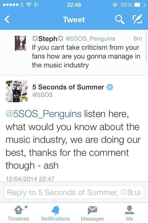 @5SOS ashton ignore it, your music is amazing,you boys have worked so hard to get where you are don't let petty things annoy you i love youThanks. Twitter will use this to make your timeline better. UndoUndo